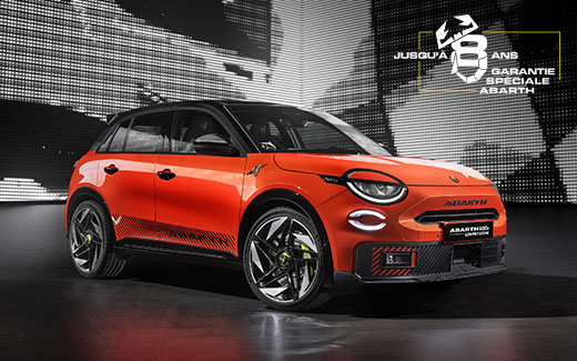 À PARTIR DE 299 €/MOIS(1) LLD SUR 37 MOIS SANS APPORT Prime CertiNergy déduite** SOUS CONDITION DE REPRISE DÉSORMAIS ABARTH GARANTIT SES VOITURES JUSQU'À 8 ANS* !